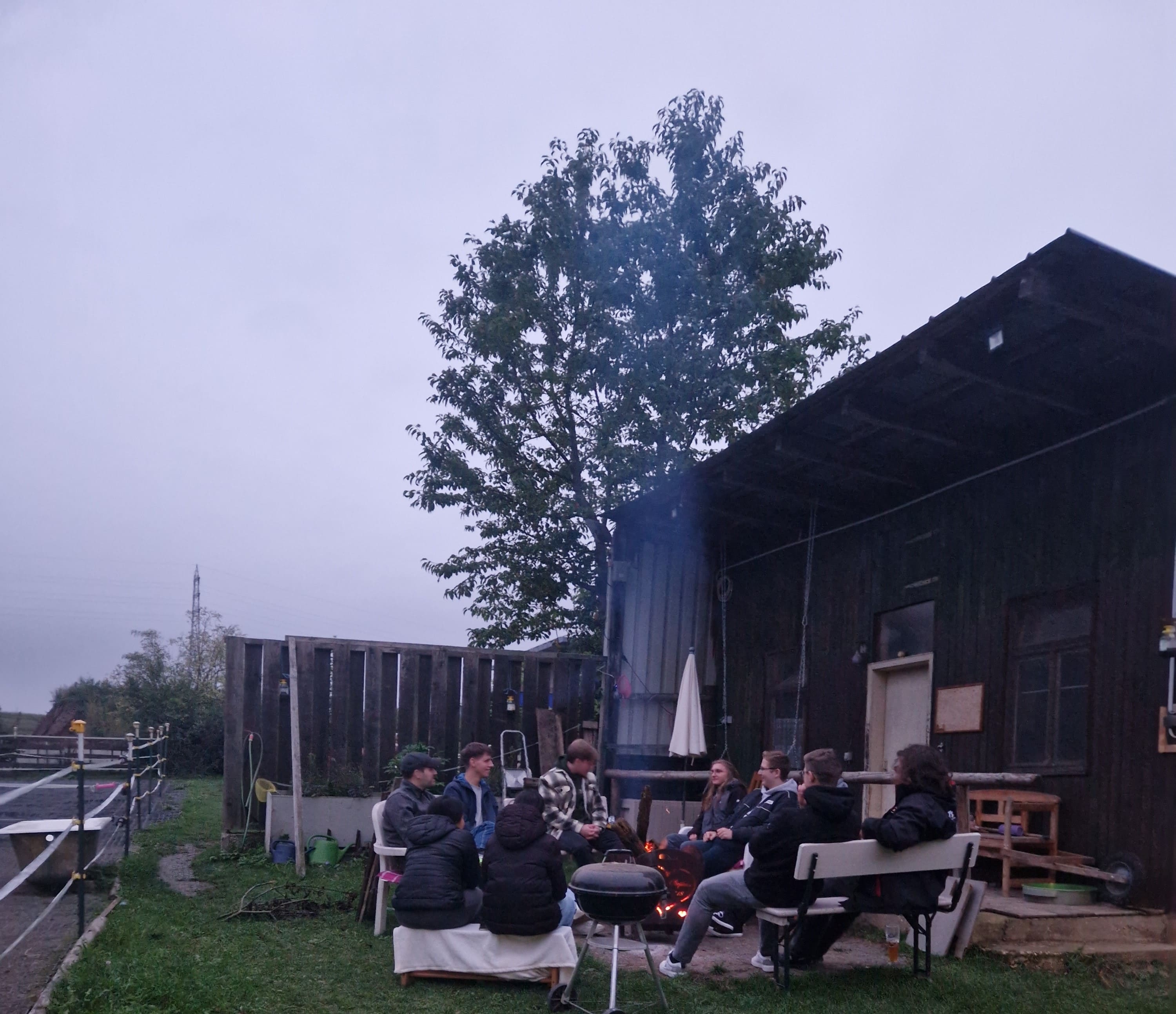 Nachdem alle satt und glücklich waren, ging es an die Feuerstelle. Dort wurde es dann erst so richtig witzig, in der Runde wurde nämlich immer der links von einem sitzende den anderen Sachen vorgestellt als wäre man die Person selbst. Als der Ausbilder uns alle Azubis so vorgestellt hat wie er sie kennt, kam keiner mehr aus dem Lachen raus – so viele witzige Gespräche und Anekdoten auf einmal!